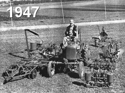 Farmall made 224,203 Cubs between 1947 and 1964; they became International Cubs in 1964. In total, over 245,000 Cubs were manufactured between 1947 and 1981. By units produced, it is the most popular small tractor in history. The Cub was one of several IH models with the seat offset from the engine, allowing the operator to look directly at the ground under the tractor. Culti-Vision, as it was called, gave the farmer an excellent view of the row. The Cub was billed as the perfect machine for the small farmer, and a "chore boy" for the larger farmer. It had a 69-inch wheelbase, using a 4-cylinder gasoline engine. At 1600 RPM, it produced about 8 Horsepower at the drawbar, well above 1,200 pounds of drawbar pull. My Cub (Serial #10573) was built in December 1947. It is 8'4" long, 4'5" wide, and 5'10" tall (top of muffler). It weighs 1,720 pounds (1,420 without the rear wheel weights).