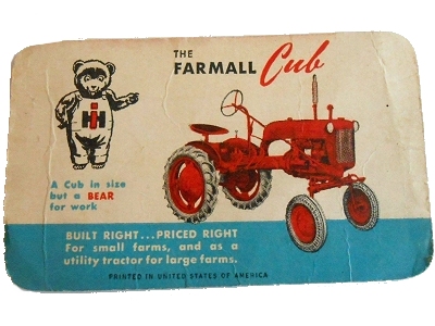 The Farmall Cub was the smallest tractor manufactured by International Harvester (IH) under the Farmall, International, and McCormick-Deering names. Built 1947-1981 at Louisville KY, the first Cub was sold in June 1947, and cost $545. Cubs were also built for use in Europe at St. Dizier, France starting in 1955.